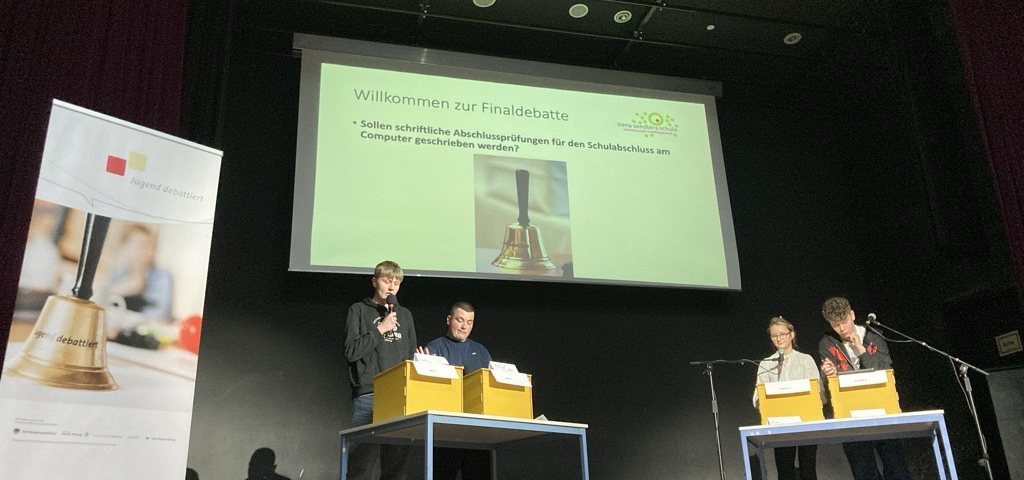 Am 20. Januar war es wieder soweit: Schülerinnen und Schüler aus den 10. Klassen haben einen ganzen Vormittag zu eigenen Themen debattiert. Schüler-Jurys aus den eigenen Reihen entschieden, wer ins Finale kam, so dass am Ende vor dem ganzen Jahrgang zwei spannende Finaldebatten in der Aula stattfanden. In Jahrgang 10 als auch in Jahrgang 11-13 wurden u. a. die Fragen „Soll für das Fahren von E-Scootern eine Führerscheinpflicht gelten?“ sowie „Sollen Jungen und Mädchen im Sportunterricht getrennt werden?“ debattiert. Die Teilnehmenden zeigten sorgfältige Vorbereitung, sachliche Argumente und einen respektvollen Austausch zum Wohle der Sache.