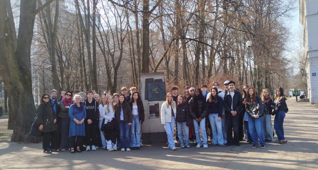 Wir haben uns vom 23. – 27. März 2026 mit der Irena-Sendler-Schule aus Tarczyn in Warschau und Tarczyn getroffen. Nach einer langen Anreise mit der Bahn haben wir den ersten Abend mit gegenseitigem Kennenlernen verbracht. In den folgenden Tagen waren wir in Warschau auf den Spuren von Irena Sendler und der Gruppe Zegota unterwegs. Irena Sendler und die Gruppe Zegota haben zusammen zahlreiche Kinder aus dem Warschauer Ghetto geschmuggelt. Wir sind gemeinsam an den Orten gewesen, wo sich ehemals das Ghetto befunden hat. Wir haben das Grab von Irena Sendler besucht und dort mit der Austauschklasse eine Kerze angezündet. Im jüdischen Museum Polin ist die 1000-jährige Geschichte der polnischen Juden für uns erlebbar geworden. Mit einem Workshop und einer Führung sind wir alle tief in das Thema eingetaucht. Am folgenden Tag waren wir zu Besuch in der Irena-Sendler-Schule in Tarczyn. Dort haben wir ein sehr berührendes Theaterstück über das Leben von Irena Sendler und das Thema „Ghettos“ gesehen. Der Theaterkurs der polnischen Partnerschule hat sich auch sehr intensiv mit dem Thema Ghettobildung in der heutigen Zeit auseinandergesetzt und seine Verarbeitung des Themas eindrücklich auf die Bühne gebracht.